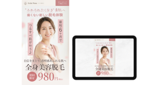 ・最下部にリピート率や実績をエンブレムで装飾し、「認定サロン」としての格付けをアピールする信頼重視のレイアウト設計にしました。